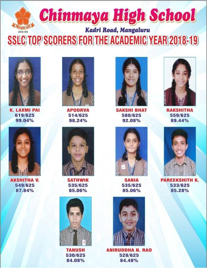 CHINMAYA HIGH SCHOOL – S.S.L.C. 2019-2020 TOPPERS LIST