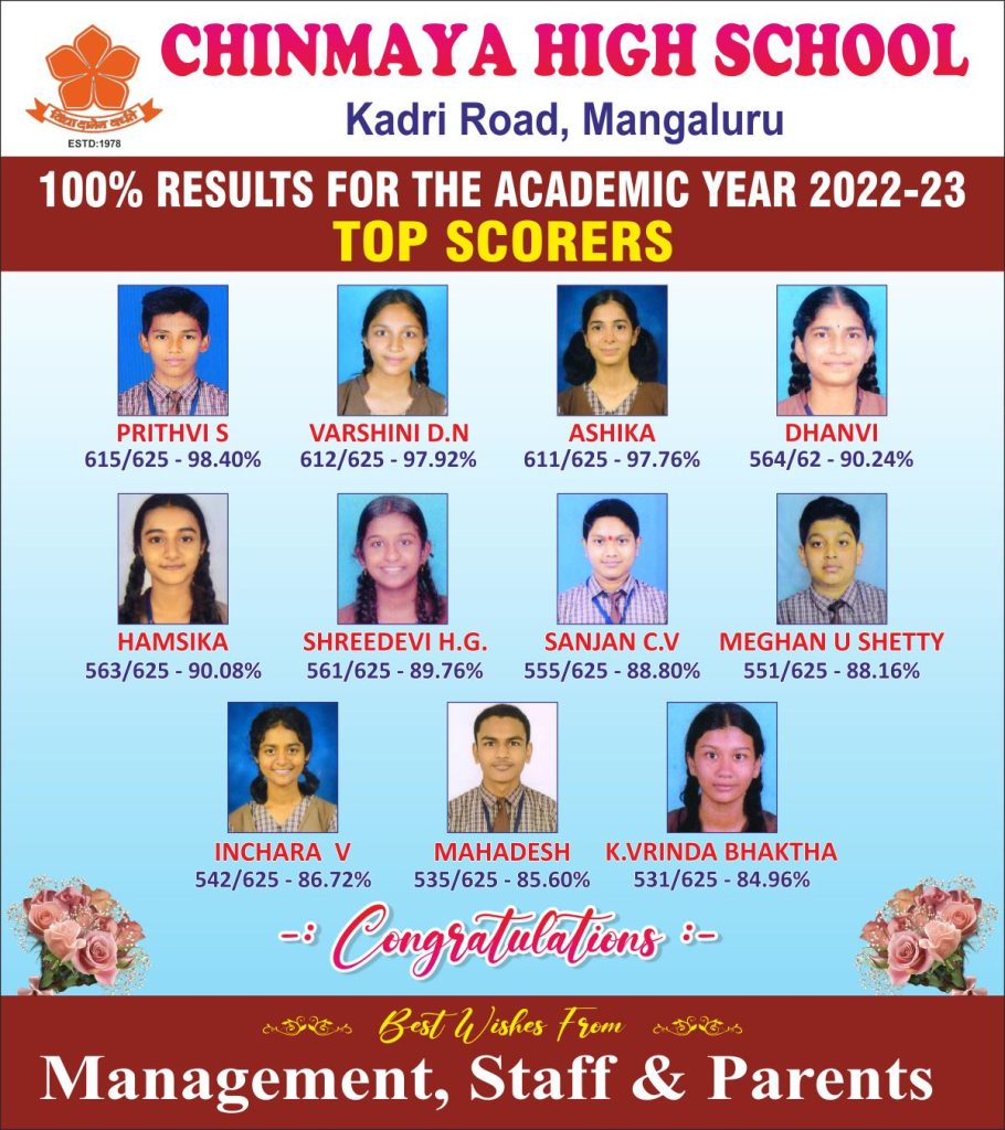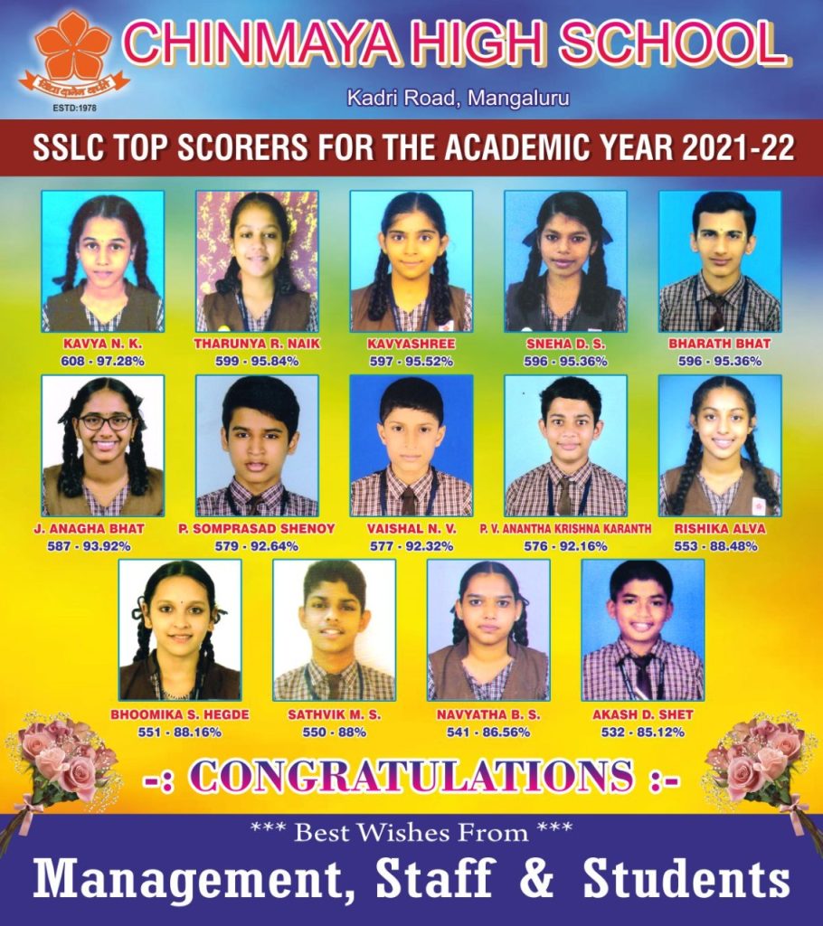 CHINMAYA HIGH SCHOOL – S.S.L.C. 2021-2022 TOPPERS