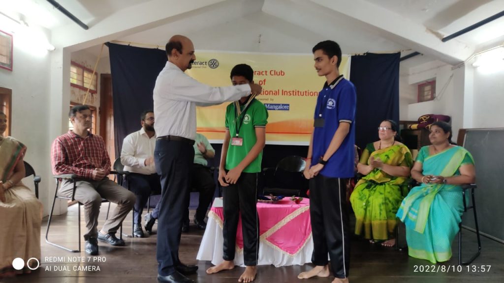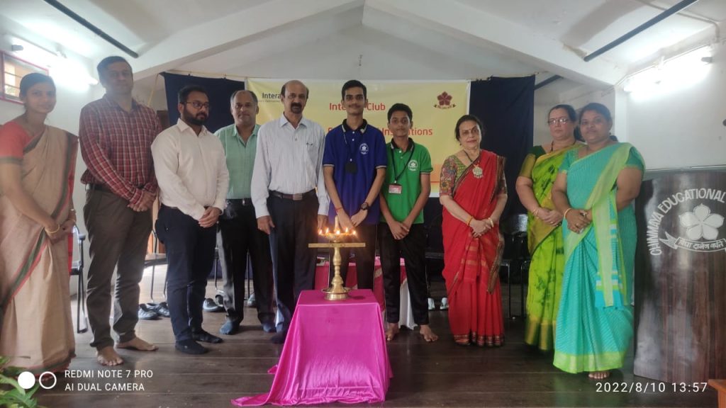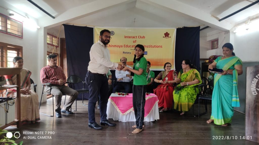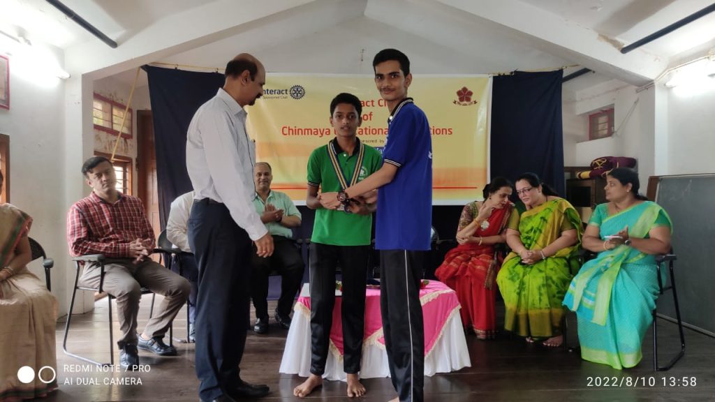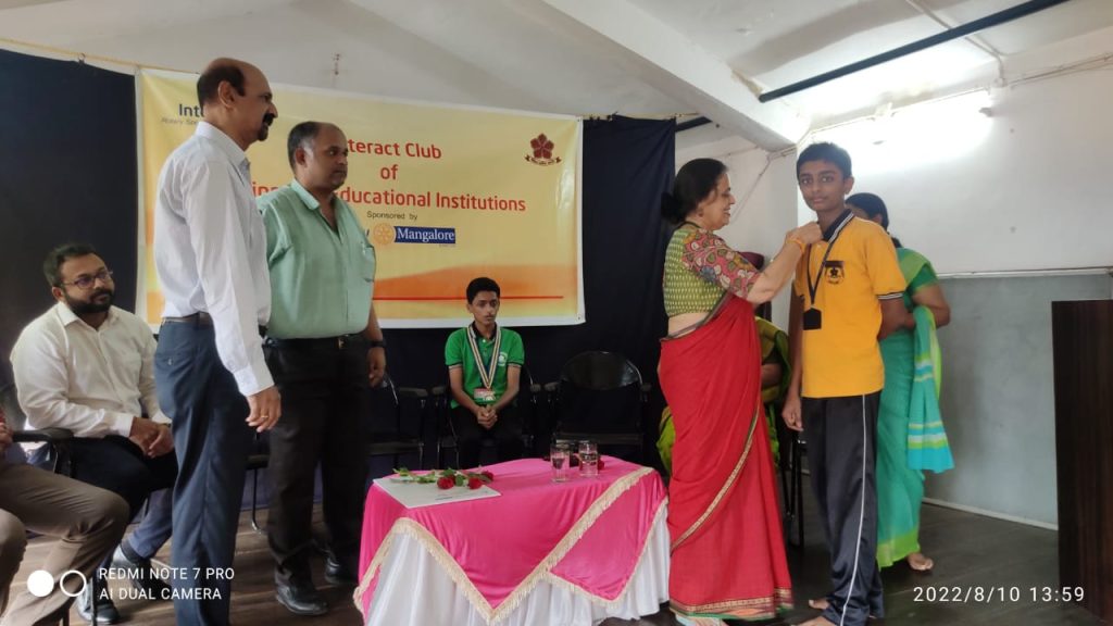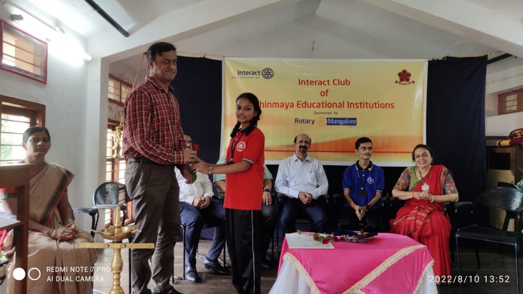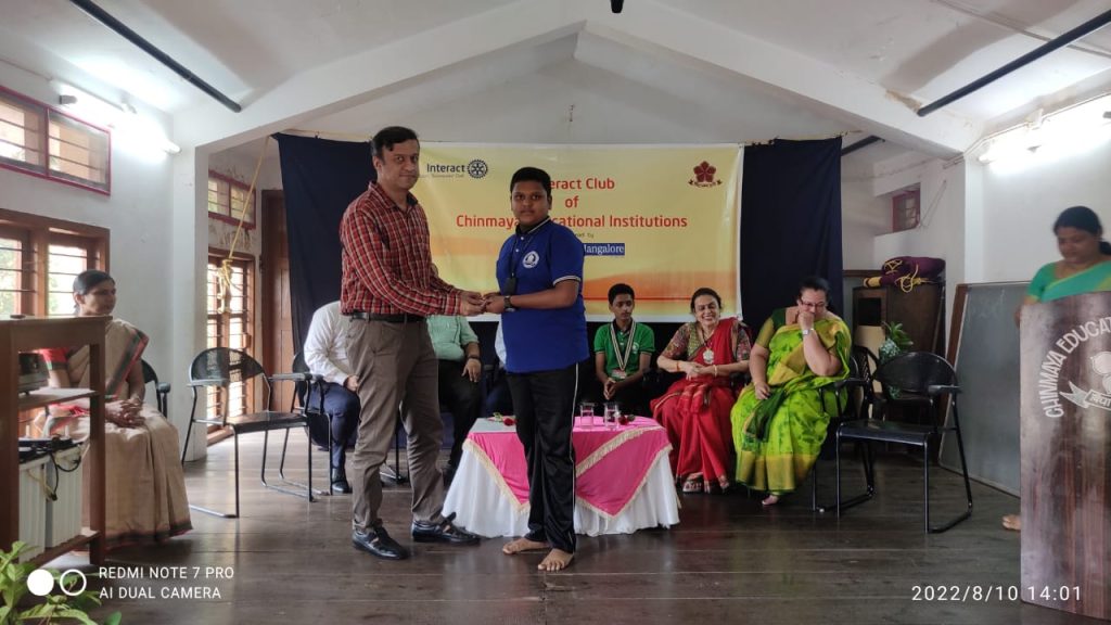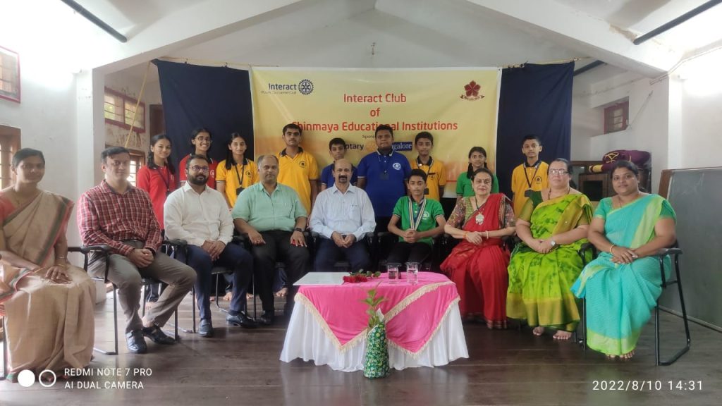 The installation of Office Bearers of Chinmaya Educational Institutions was held on Wednesday 10th of August 2022 presided by Rtn. R.K.Bhat , President of Rotary Club Mangalore, Mrs.Bharathi Shevgoor, Secretary of Chinmaya Educational Institutions ,Rtn. Mayur Sherigar, Youth Service Director , Rtn. Ashwin Pai maroor, Club Secretary, Rtn. Vishal Mallya, Interact Chairman, Mrs. Purnima J.Bhat , staff coordinators Mrs.Ashalatha and Mrs.Vani Mukunda were present on this occasion..