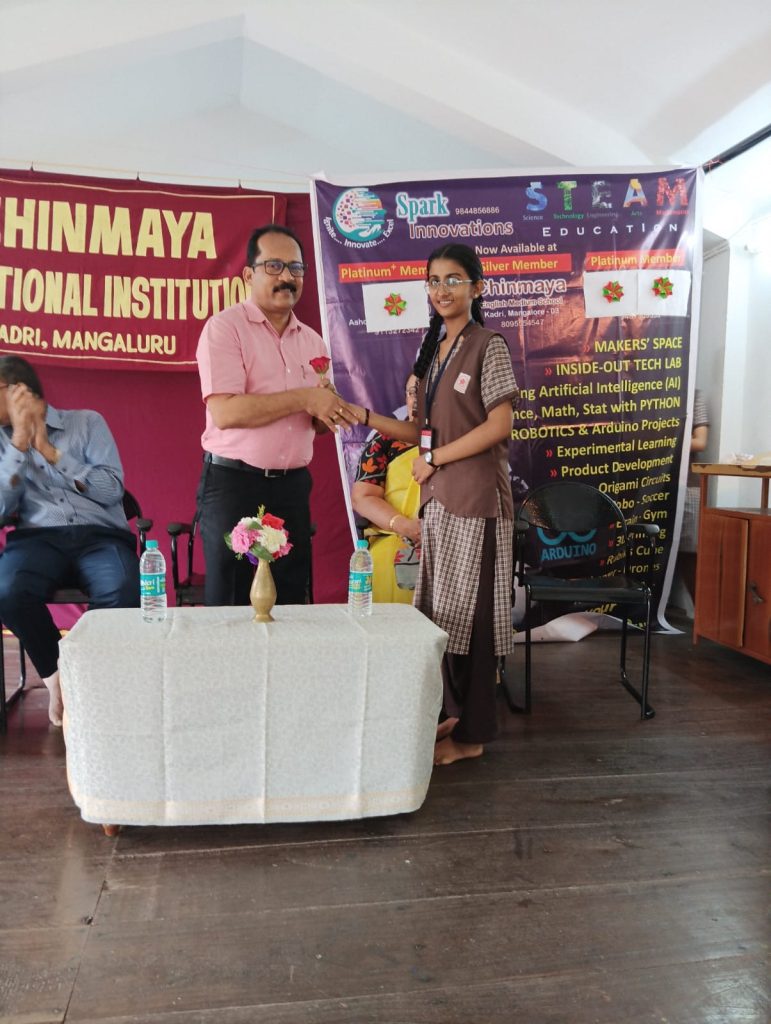 To create awareness towards echo system , sapling was handed over to Interact President Int. Anush Mohan and Headmistress Mrs.Purnima J Bhat by the Rotary President Rtn. R.K.Bhat.