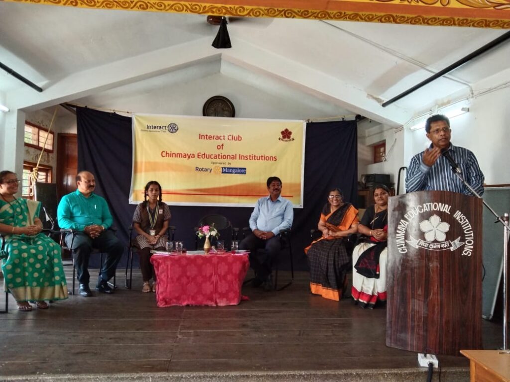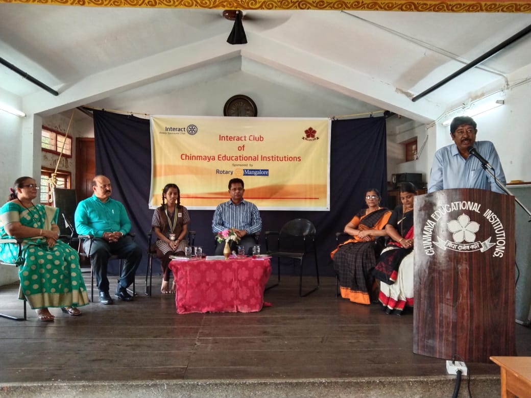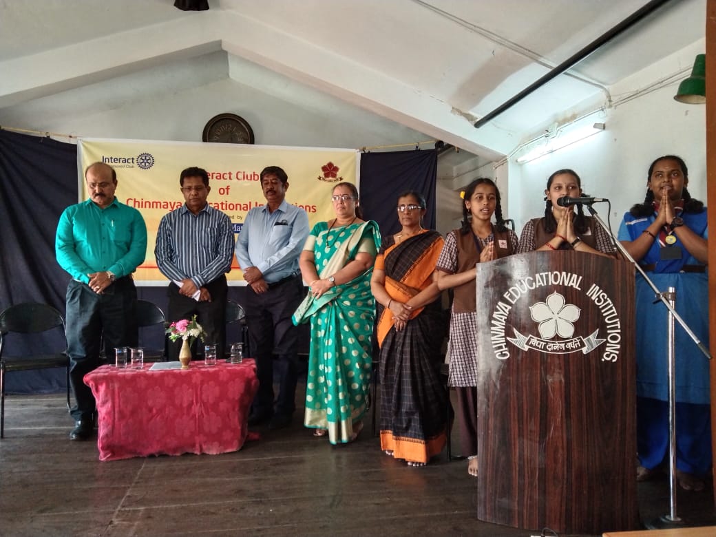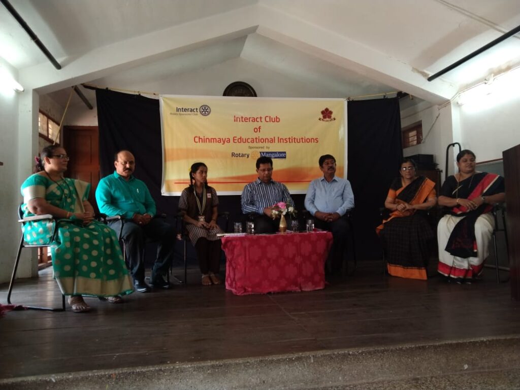 The Installation of the Interact Club of Chinmaya Educational Institutions was held on Saturday the 6th of March 2020-21 at 11.00 am at the School Auditorium. After the Invocation and welcome by the Headmistress Mrs. Purnima J. Bhat, the program was officially inaugurated by the traditional lighting of the lamp by the dignitaries. Rotary club President Rtn. Archibald Menezes inducted the Interact President Int. Kavya N. K . Youth Service Director Rtn. Vinod Dsouza and Mr. M. N. Pai, President of Chinmaya Educational Institutions inducted the other Office Bearers. Interact President Int. Kavya N.K then delivered her acceptance speech. Rotary President Rtn. Archibald Menezes & Youth Service Director Rtn. Vinod Dsouza gave a meaningful and excellent messages on goals of Interact club. The President of Chinmaya Educational Institutions Mr. M. N. Pai in his address inspired and encouraged the students to be dutiful and responsible.