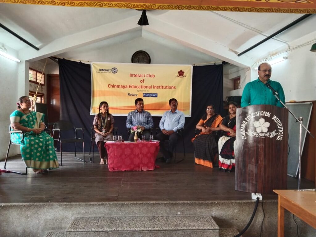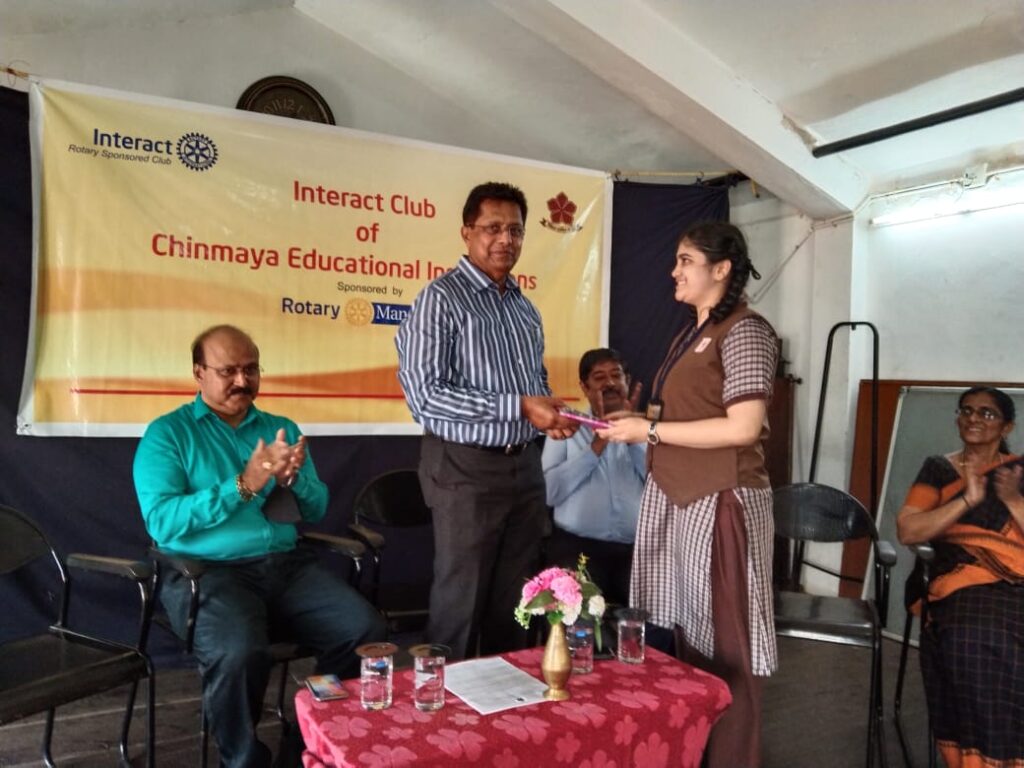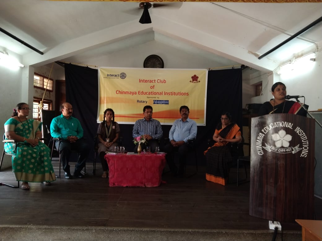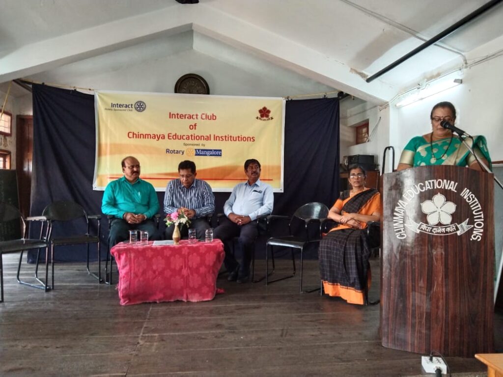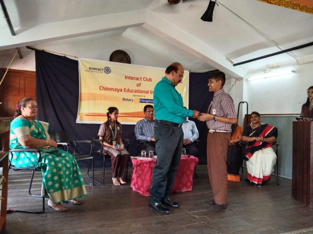 The Installation of the Interact Club of Chinmaya Educational Institutions was held on Saturday the 6th of March 2020-21 at 11.00 am at the School Auditorium. After the Invocation and welcome by the Headmistress Mrs. Purnima J. Bhat, the program was officially inaugurated by the traditional lighting of the lamp by the dignitaries. Rotary club President Rtn. Archibald Menezes inducted the Interact President Int. Kavya N. K . Youth Service Director Rtn. Vinod Dsouza and Mr. M. N. Pai, President of Chinmaya Educational Institutions inducted the other Office Bearers. Interact President Int. Kavya N.K then delivered her acceptance speech. Rotary President Rtn. Archibald Menezes & Youth Service Director Rtn. Vinod Dsouza gave a meaningful and excellent messages on goals of Interact club. The President of Chinmaya Educational Institutions Mr. M. N. Pai in his address inspired and encouraged the students to be dutiful and responsible.