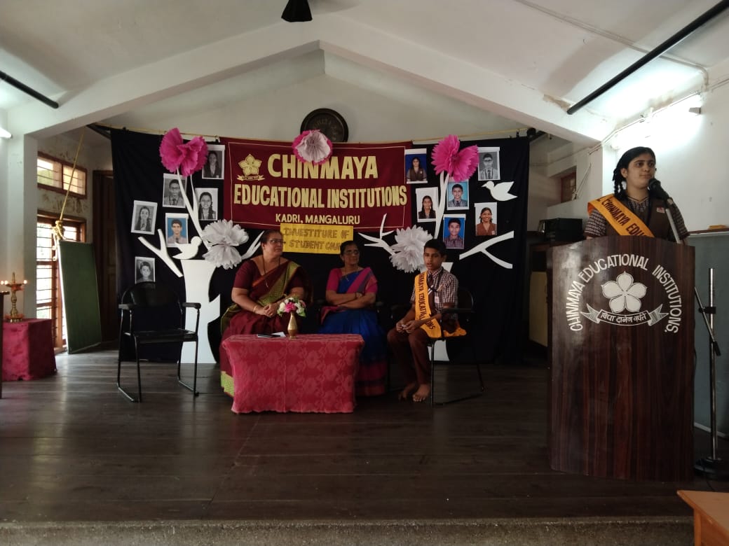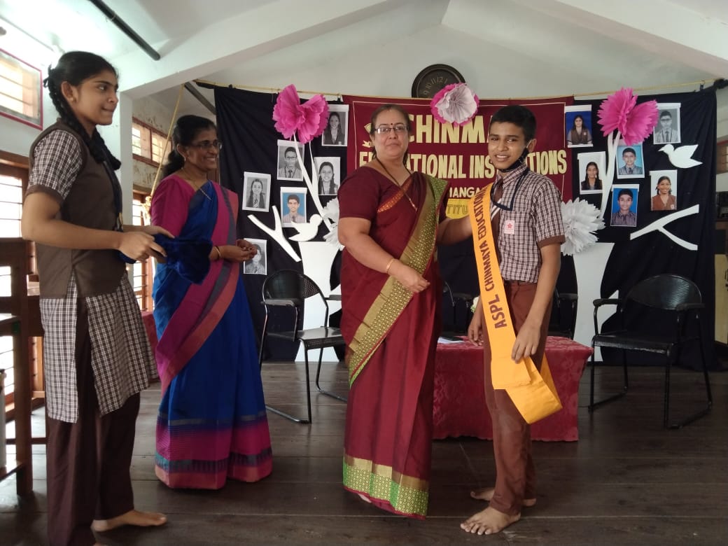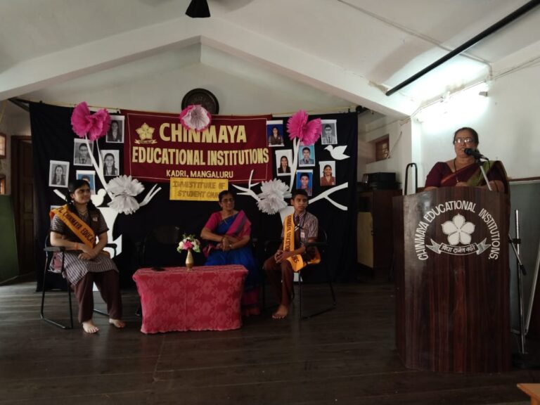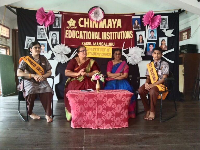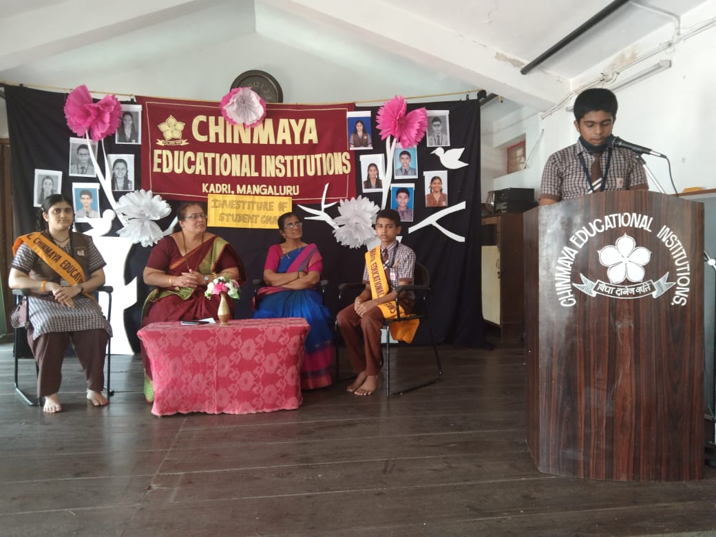 The programme commenced with a prayer followed by lighting of the lamp. Our Headmistress Mrs. Purnima J. Bhat congratulated and honoured newly elected SPL Miss. Manya Nayak of class X, ASPL Master. Somprasad Shenoy of class IX and other Cabinet ministers of Student council. She advised them to be role – models for other students.