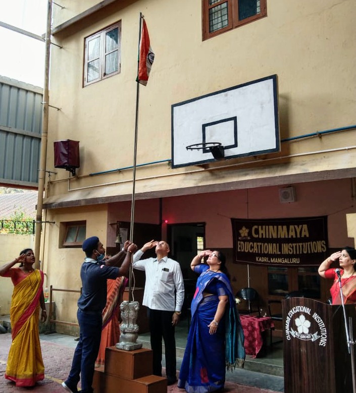 The programme commenced by invoking God’s blessings. The Indian national flag was unfurled by the chief guest Sri.Nandagopal Shenoy , Secretary of Chinmaya Educational Institutions followed by National Anthem.