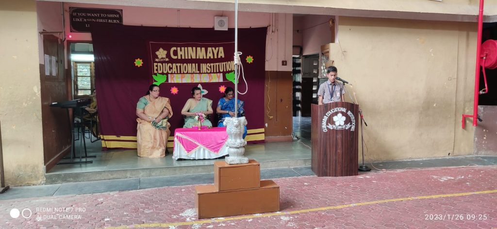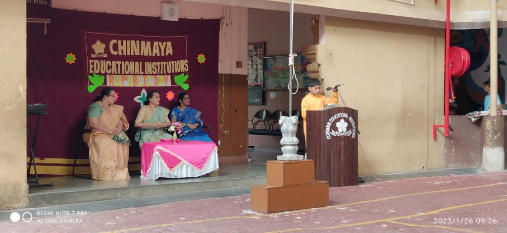 Chinmaya Educational Institutions celebrated 74th Republic Day in the school withe patriotic fervour. The celebrations commenced with a song ‘Vande Mataram’.