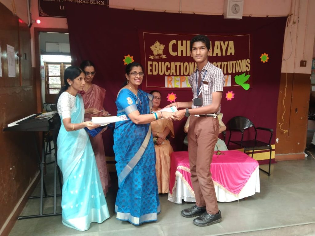 The students of 9thstd presented patriotic songs which instilled the fervour of nationalism. Mrs.Purnima J Bhat , Headmistress of Chinmaya Institutions welcomed the gathering. The significance of the day was presented by Miss.Manya Nayak of X std. Mrs. Sandhya Kamath one of the faculty member proposed the Vote of thanks and Mrs. Shaila Shenoy was master of ceremony.