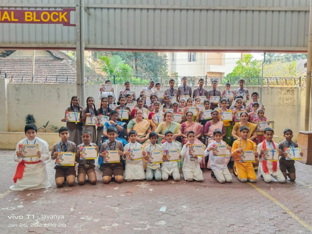 Secretary of the School Management Board Mrs, Bharathi Shevgoor unfurled the National Flag, explained the importance of the Constitution to the students and encouraged them to live a good citizens in the society.